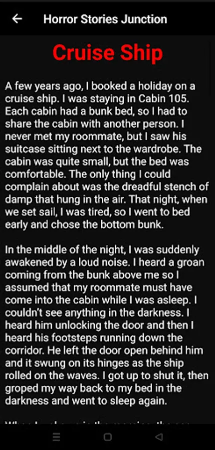 Horror Stories app is full of mysteries and deeply ghost and witch stories based on true stories. In order to make your nights a little scarier, here are some of the finest horror. Short horror stories to tell at night and scary tales and adults to read offline. The stories will freak you out so it's best to read these with someone. Preferably a friend and not a stranger you've decided to creep up. Turn off the lights and prepare to be scared by these 7 terrifying and unsettling true ghost stories.