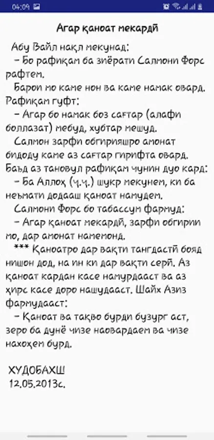 Бо кас маписанд, эй бародари ман“ (мазмуни ҳадис)