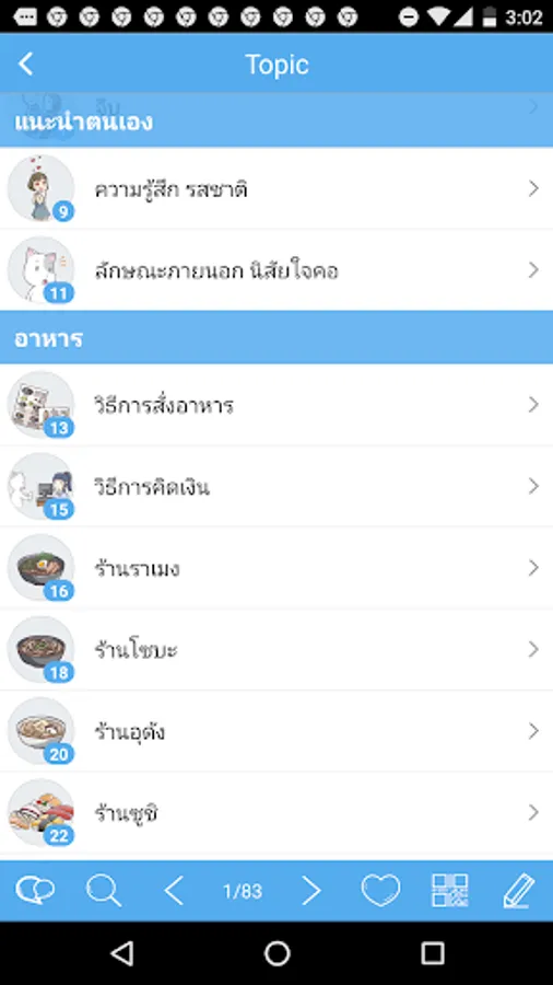 1. Communication: Greeting, Self Introduction, Feeling/Taste