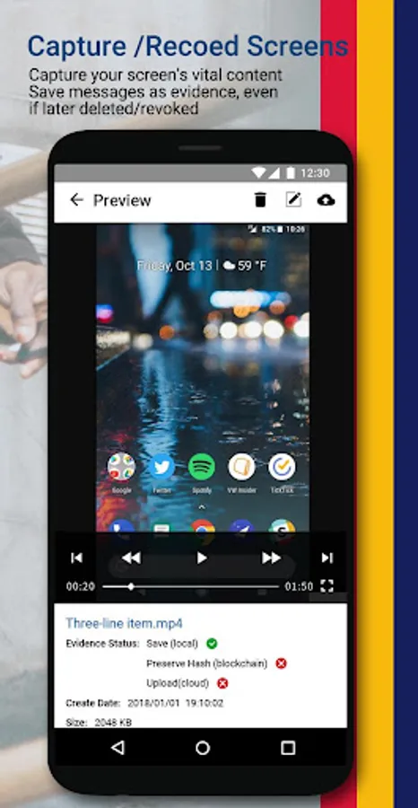 ・Four major evidence collection functions: Photo, Video, Voice Recording and Screen Recording therefore, accommodates various types of evidence collection needs.