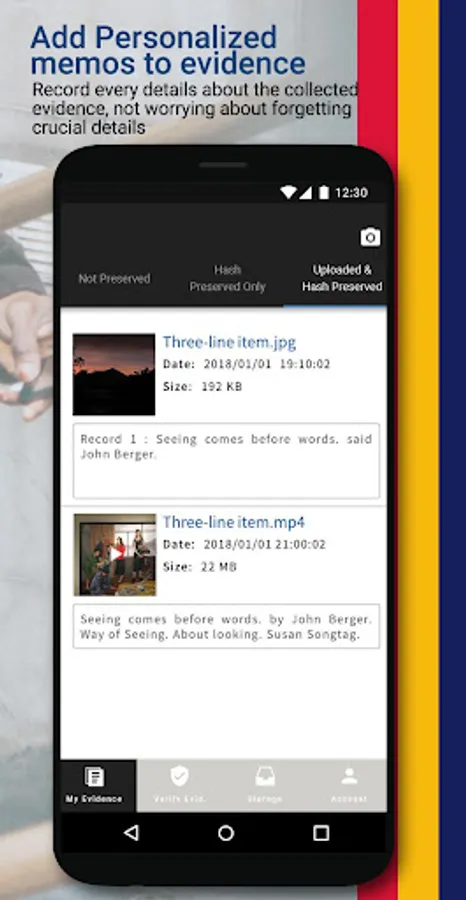 Using the latest technology, you can efficiently Collect, Store, and Verify evidence!
