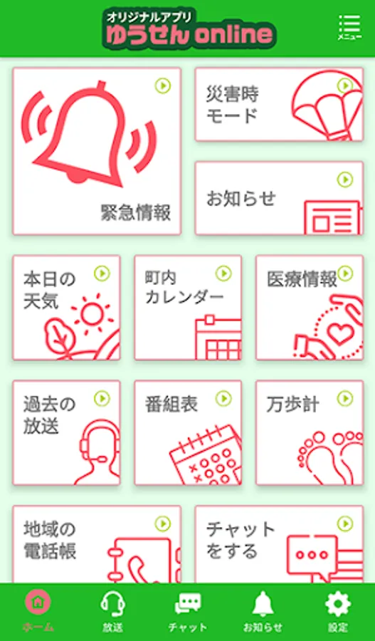 多賀町有線アプリ ゆうせんONLINEはチャット機能や町内カレンダー、過去の放送の視聴、災害時に役立つコンテンツや緊急情報通知システムなどを搭載した有線加入者限定の多機能アプリです。