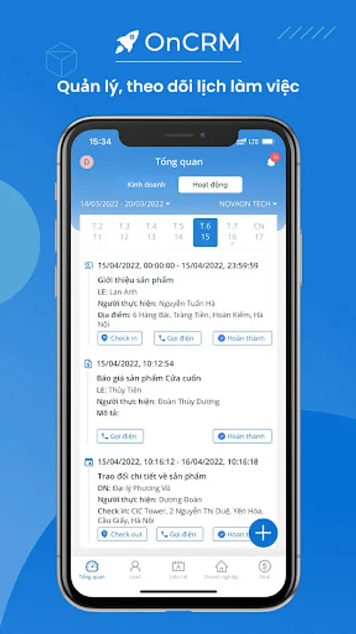 OnCRM is an enterprise customer management application on the phone, supporting many types of business models: B2B, B2C, B2B2C. OnCRM helps businesses easily centrally manage customer information, track interaction history between employees and customers, save time and costs, and increase service quality and revenue growth. for Business.
