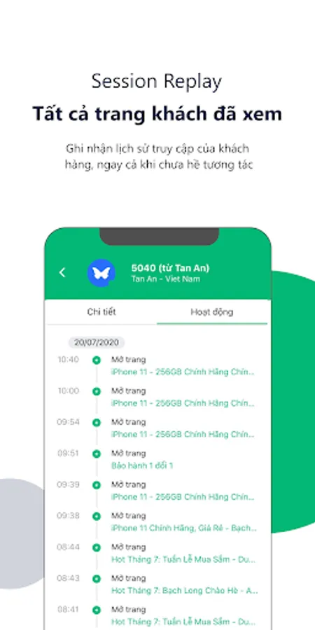 - Know who you are talking to - Full customer profile including contact information, activity history on the page