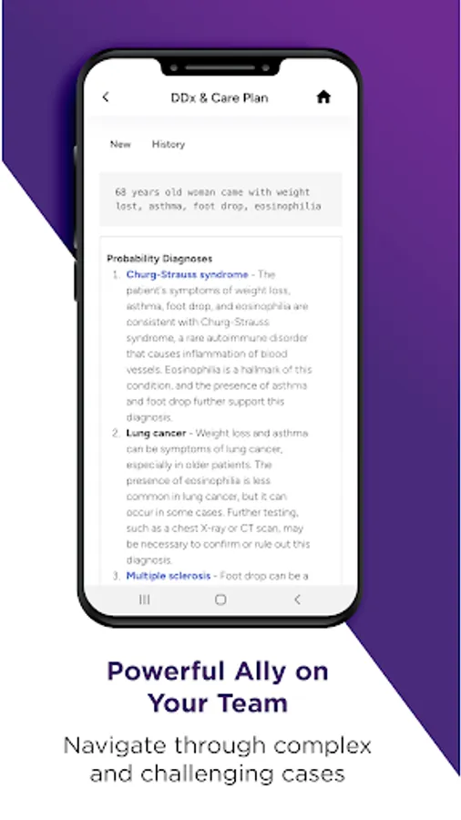 • Differential diagnosis: Quickly and accurately analyze patient symptoms and medical history to provide a list of potential diagnoses.