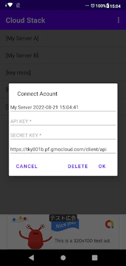 1.Add Connect Acount at menu. Require "API KEY", "SECRET KEY", "ENTRY POINT".