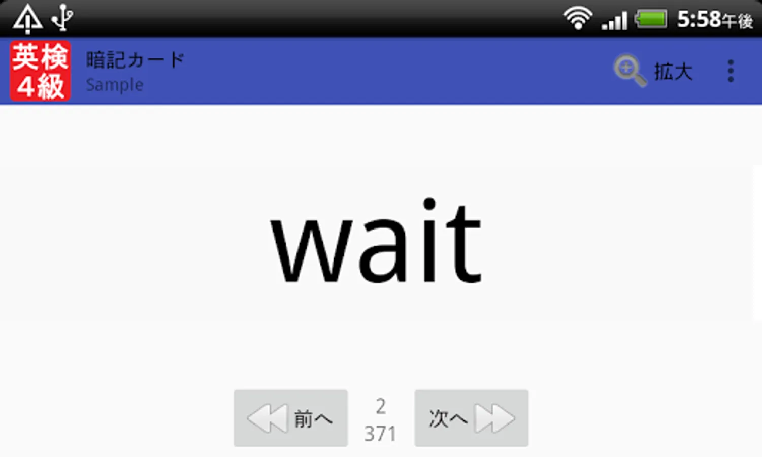 It is a memorization card for English proficiency level 4 that contains 371 words.