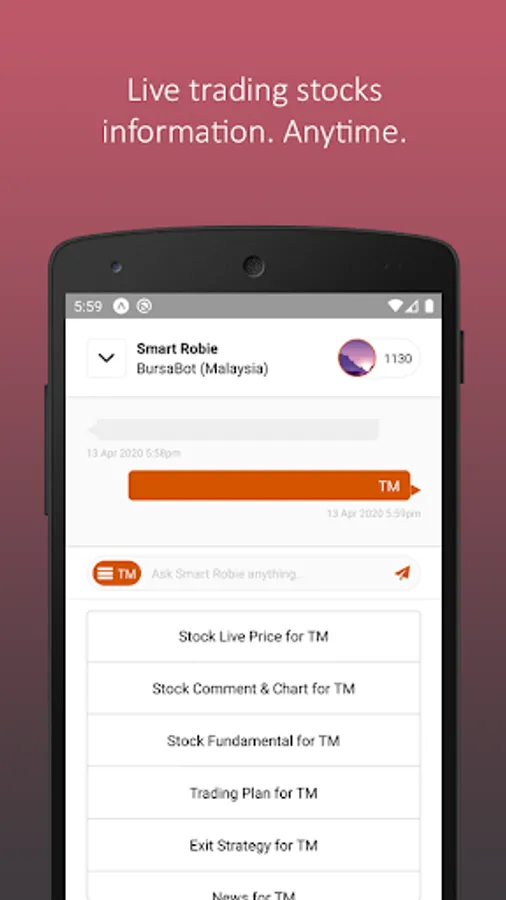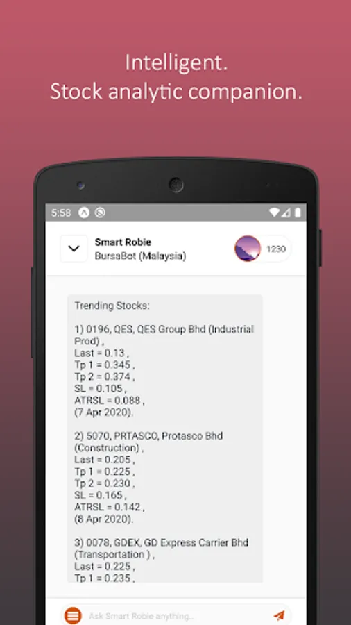 SMART Robie is a simple mobile app where you can get unlimited assistance of share analysis, price check, other stock trading consideration from an AI investing bot powered by TradeVSA, independence and unbiased!