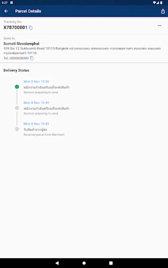 แอปพลิเคชั่นที่จะช่วยให้ร้านค้าสามารถเรียกรถเข้ารับพัสดุได้แบบง่ายๆในเวลาที่ต้องการ และยังสามารถจัดการกับข้อมูลผู้รับ เช่นเปลี่ยนแปลงเบอร์โทร, เปลี่ยนแปลงที่อยู่ เป็นต้น รวมถึงสามารถตรวจสอบสถานะพัสดุที่ส่งและยังสามารถแชร์เลขพัสดุให้กับผู้รับได้ง่ายๆเพียงปลายนิ้ว