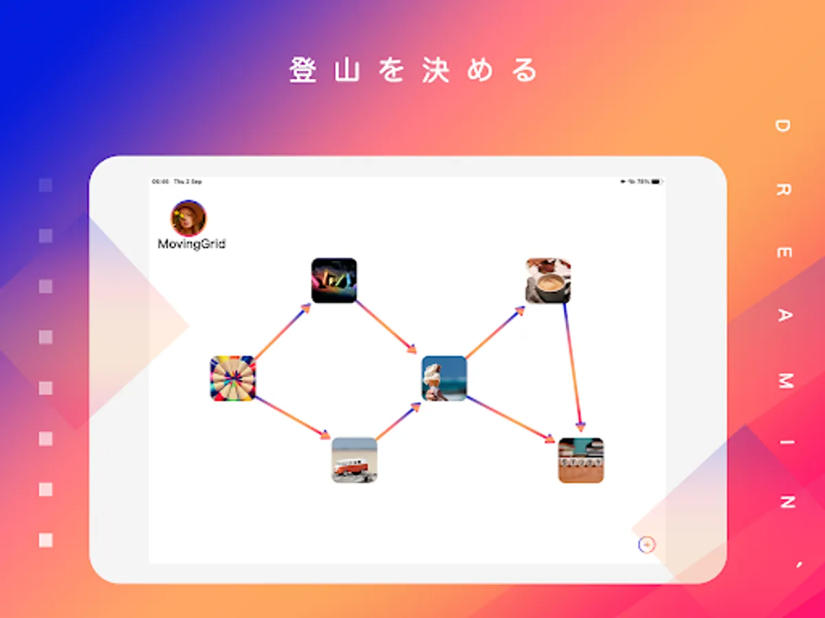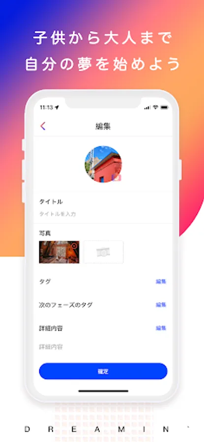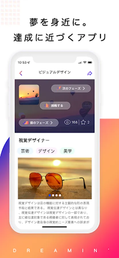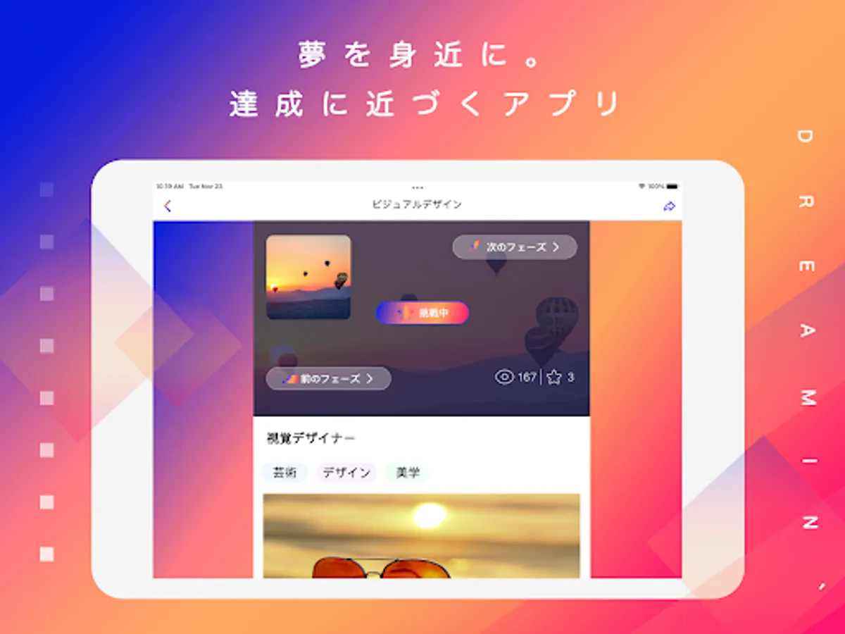 This app is an achievement-type SNS app that allows experts and professionals to learn the process and stage to achieve it, grasp the "concrete next action" from the dream, and push forward to the dream. ..