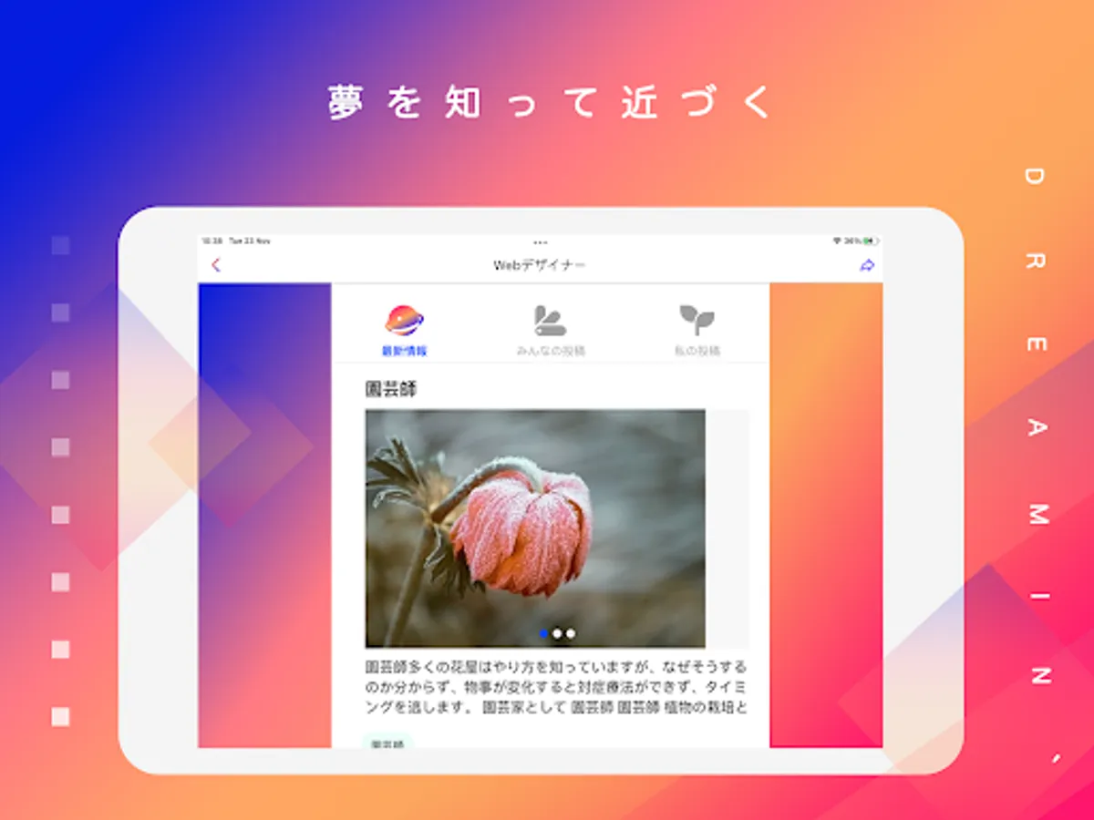 With a follow-follower function that allows you to connect with experts, professionals, and users who are chasing dreams, you can share information in real time. You can feel the message of support and the effort you make up close.