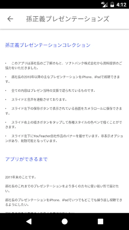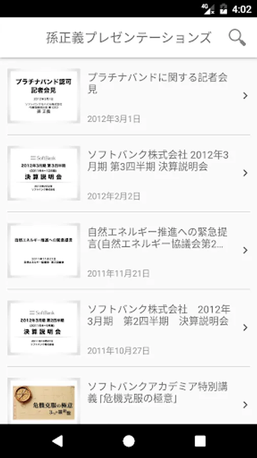 • You can enjoy viewing Masayoshi Son's main presentations since 2010 on iPad and iPhone.