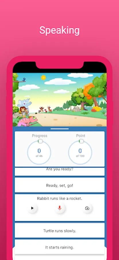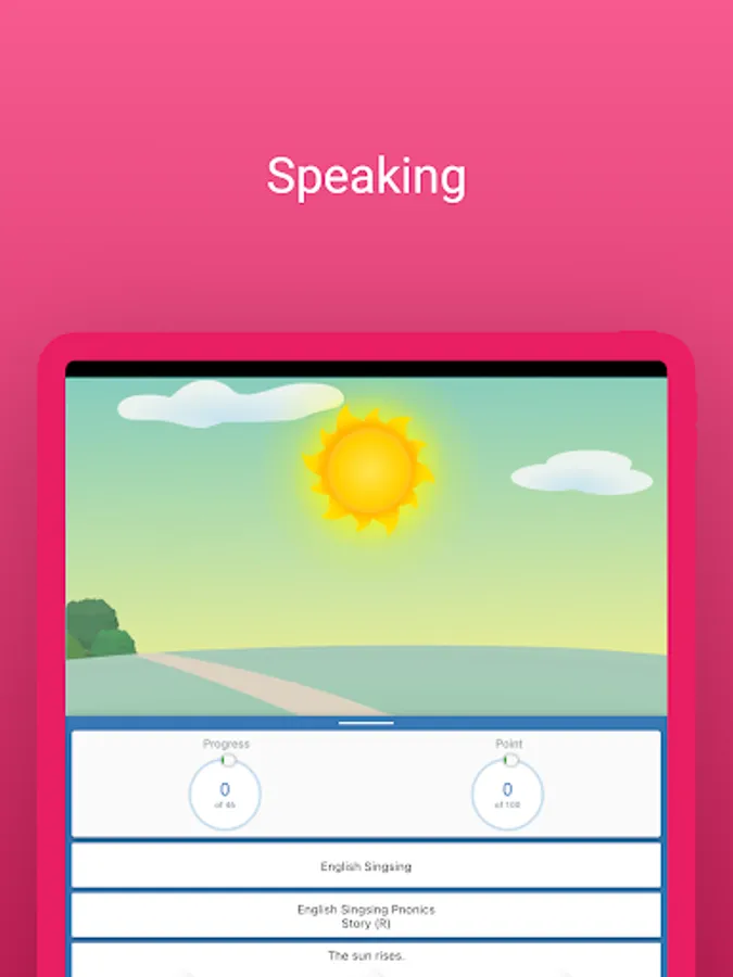 • Practice speaking based on the pronunciation of native speakers from the video, the application will evaluate and score your pronunciation