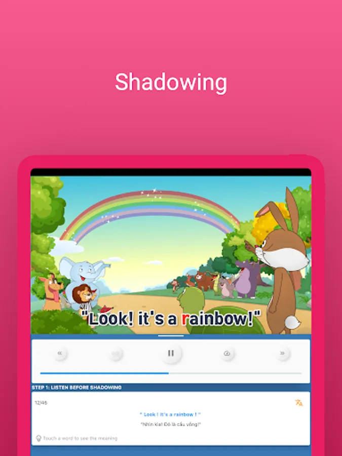 • Listen and mimic the speaker's speech. Our latest speech recognition technology will analyze your speech and highlight your pronunciation mistakes.