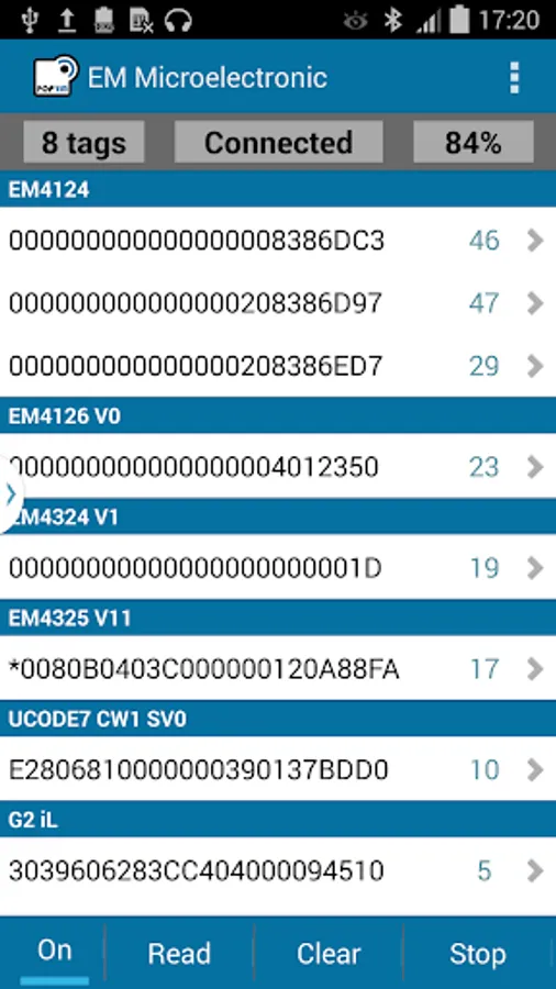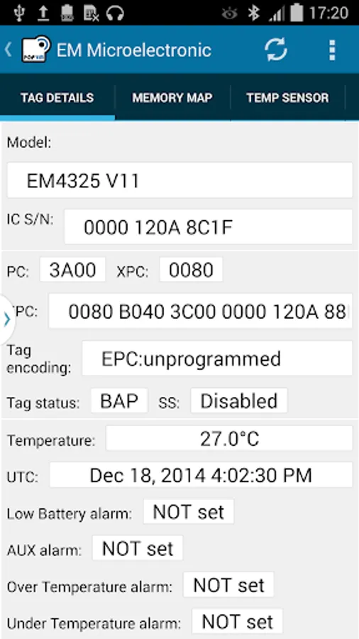 The POP’EM Reader Android App is designed to easily demonstrate the different features of the EPC class-1 gen-2 tag ICs being developed by EM Microelectronic. The Android App works with the Arete POP smart RFID dongle Reader for smartphone from the korean company Phychip. The list compatible devices is monthly updated by Phychip. Please check Phychip website for more details: http://arete-mobile.com/arete_pop.html