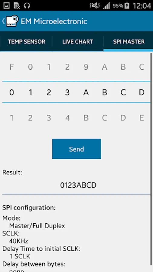 e. "SPI Master" to send SPI data to an SPI slave device. This tab appears only when the EM4325 is configured as a full-duplex SPI master device.