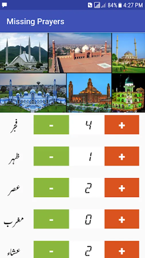 This App enables users to count their Missed/Qaza prayers on daily basis. A daily reminder in this app would reminds you to log your todays missed/qaza Prayers/Namaz/Salaat. You can also decrease the count when you performed the missed prayer. There are two buttons i.e. Add and Subtract for each prayer. When you missed particular time prayer tap the Add button and subtract button when you performed the missed prayer.
