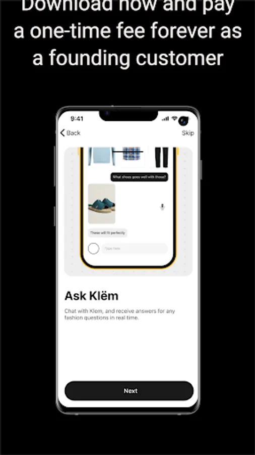 As a founding member of Klëm, you will get the full experience for only 2.99 forever- no need to pay the monthly subscription cost of 5.99. All we ask in return is your constant honest feedback and suggestions to make Klëm the only wardrobe assistant you will ever need. Email me directly with any feature requests at Christine@klem.app