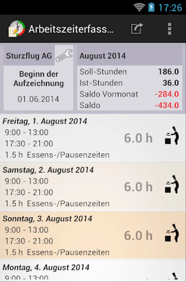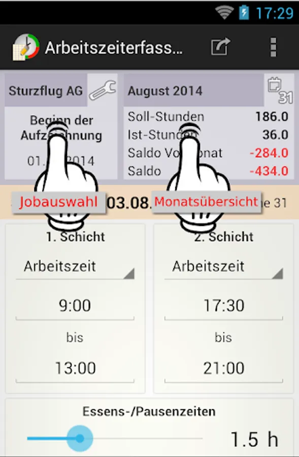 It is particularly suitable for everyone who regularly works in split shifts and has to keep time books.