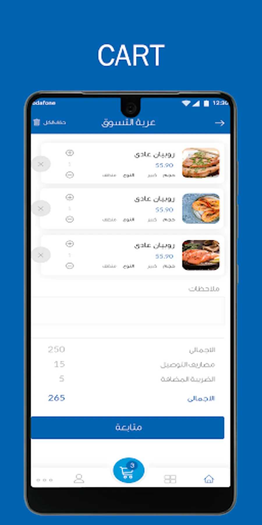 نحرص أن نوفر أعلى معايير الجودة في الأسماك الطازجة التي نقدمها عبر التطبيق لأن هدفنا هو إرضاء عملائنا الكرام.