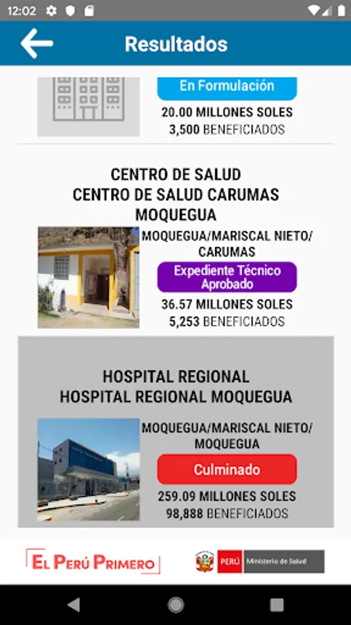 This application facilitates the monitoring and control of public health investment projects that are developed nationally by the Ministry of Health