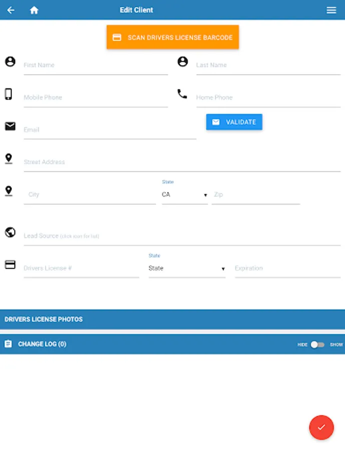 2: Take photos of drivers license & scan the backside of the license for faster input.