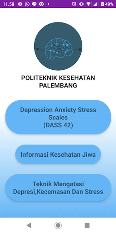 DeAS Care is an application designed to determine the level of depression, anxiety and stress experienced by a person. Users can find out their mental health condition after answering questions in the application.
