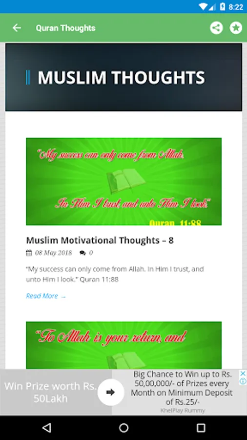 Holy Quran Thoughts App contains Islamic Quotes, Videos, Songs and Messages...