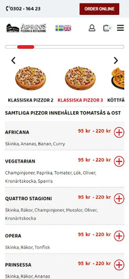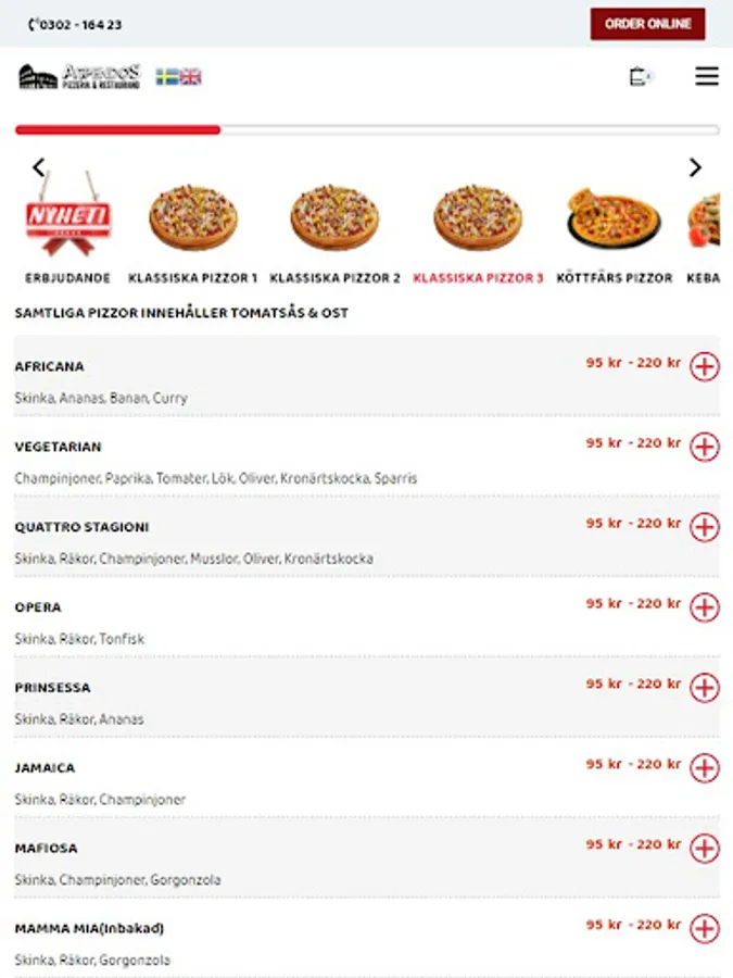 You can order online with different payment options. Take advantage of the rich menu content and attractive promotions. You can order online pizza, burgers and salads in the Lerum region.