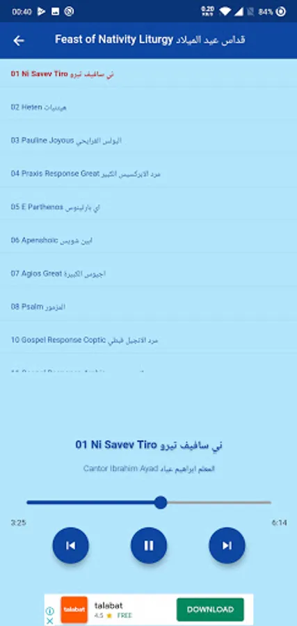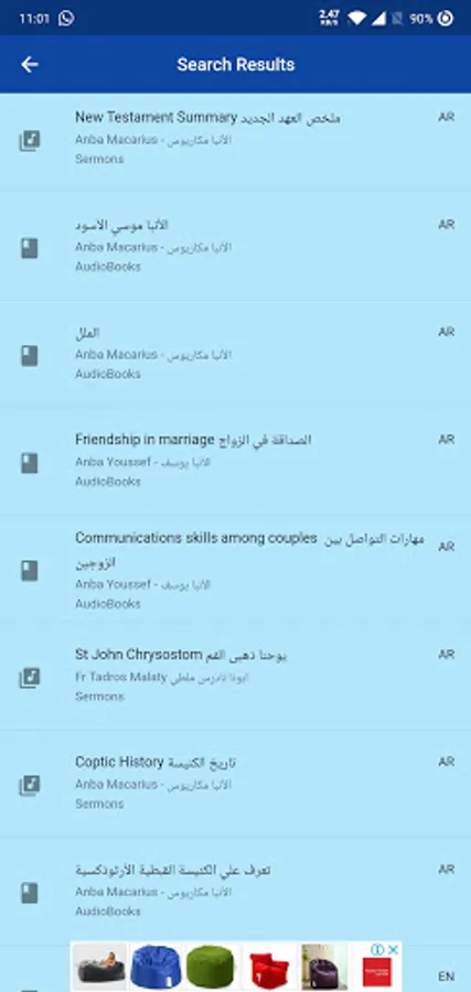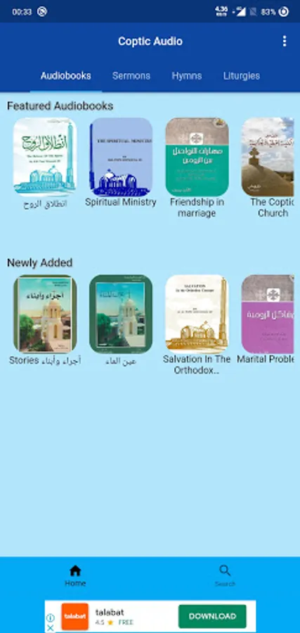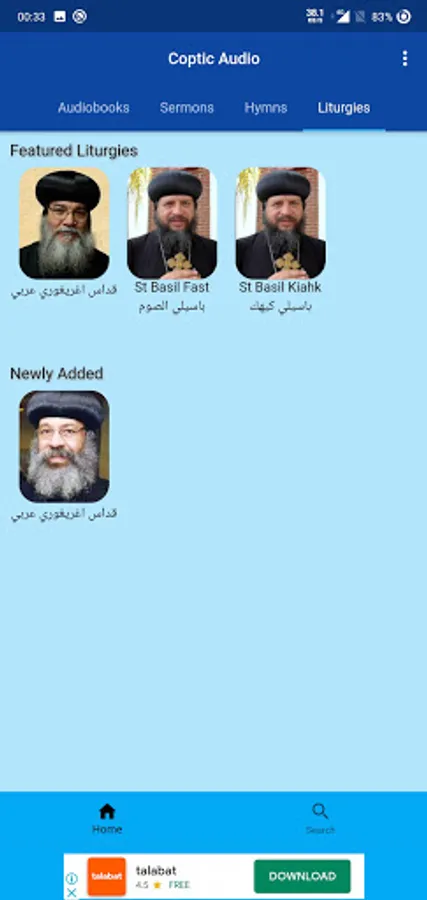 The application currently has audiobooks for Pope Shenouda III, Bishop Youssef (Southern USA), Bishop Macarius (El Menia) and Fr Tadros Malaty.