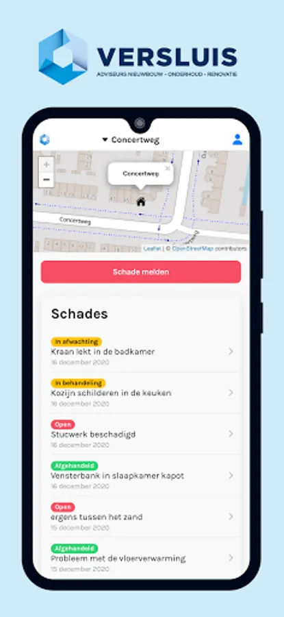 With the Versluis App you as a user can easily report damage and keep track of real estate.