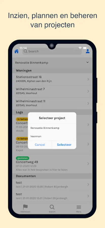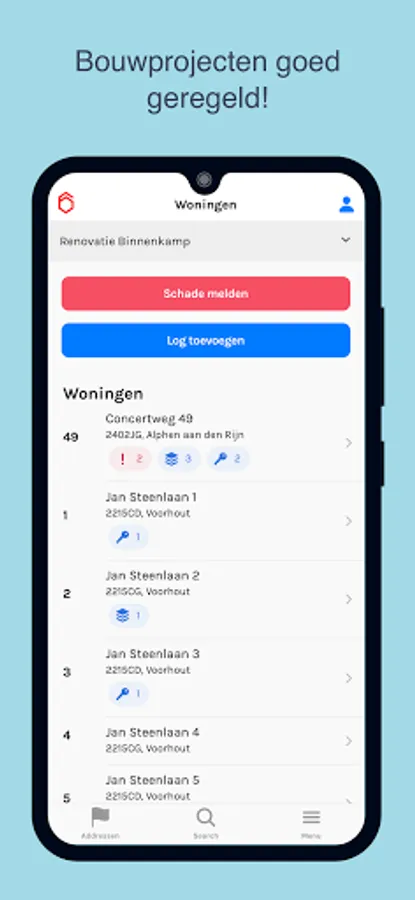 - View the overview of all your projects and addresses