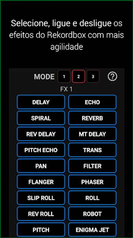 The AssistDj application works as a complementary device for Pioneer controllers that use the Rekordbox software. With it you can select, turn on and off all 21 FX's available in the simple version of the Rekordbox software (activated with original key) much faster, in addition to being able to change the selection of CFX's, having 6 of 9 options available in the application.