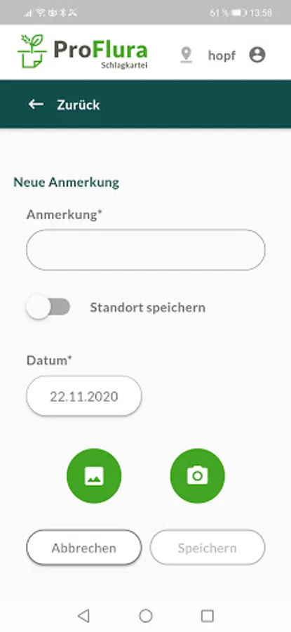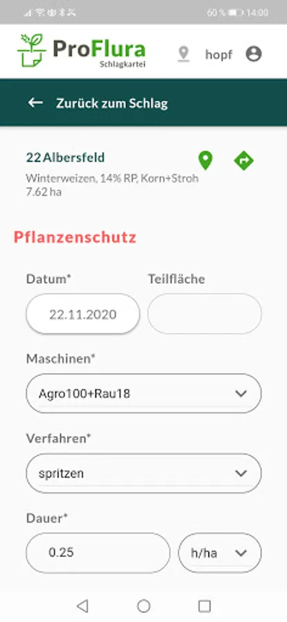 This app requires active use of the ProFlura® field record on the PC and supplements professional data acquisition. This app only works if the master data has been set up on the PC, there is a login to the app and the data has been actively provided for mobile recording. ProFlura® is not an online field card. Your data is where it belongs: on your PC! If you want to use the convenient use of the mobile app, the information required for documentation must be made available on the web server for data transfer. Company-sensitive data such as lease management, economic evaluations and resource statistics always remain on your computer.