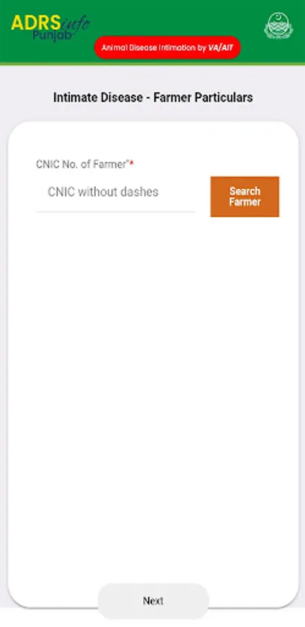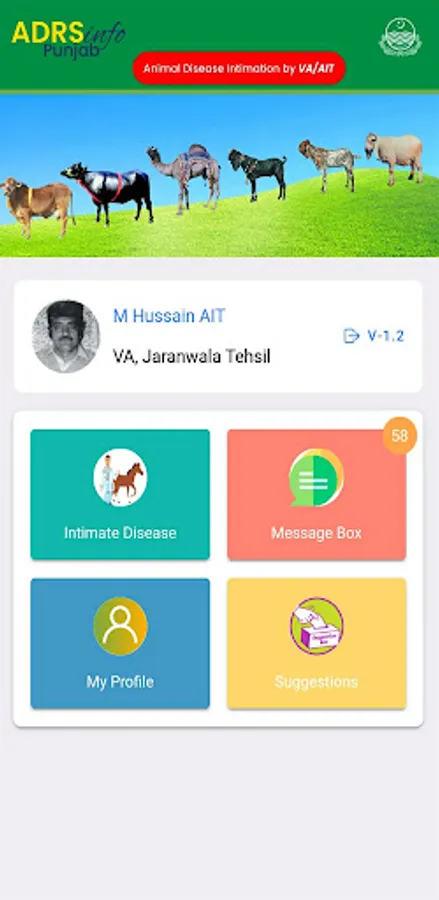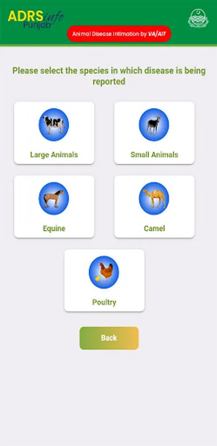 The ADRS-VA Mobile APP is introduced by the Livestock Department Punjab (Pakistan) for Intimation of Notifiable Diseases in the animals falling under their area of jurisdiction by the VAs and AITs. They can electronically intimate the notifiable diseases to Directorate of Animal Disease Diagnostic Reporting and Surveillance (DADRS), Punjab - Pakistan in the livestock of their area of jurisdiction covering Large Animals (Cattle, Buffalo), Small Animals (Sheep, Goat), Equine (Horse, Donkey, Mule), Camel and Poultry. When the VA or AIT installs the ADRS-VA app in his mobile then he can immediately start intimating the farmer wise notifiable disease to the department within minutes.