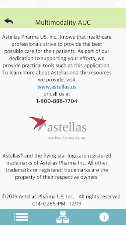 Some authors of the publication on which this app is based have a financial relationship with Astellas. Financial compensation from Astellas was not received in relation to the creation of the 2013 Multimodality AUC publication.