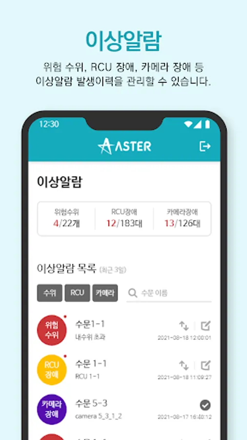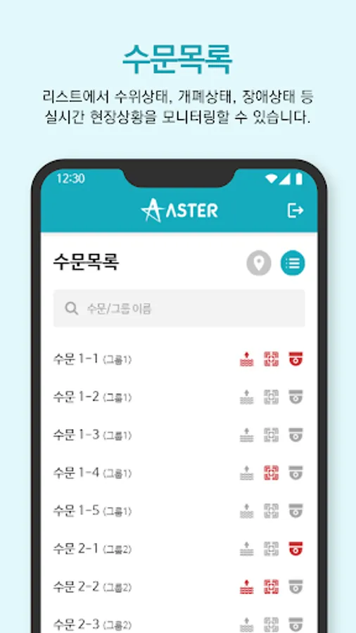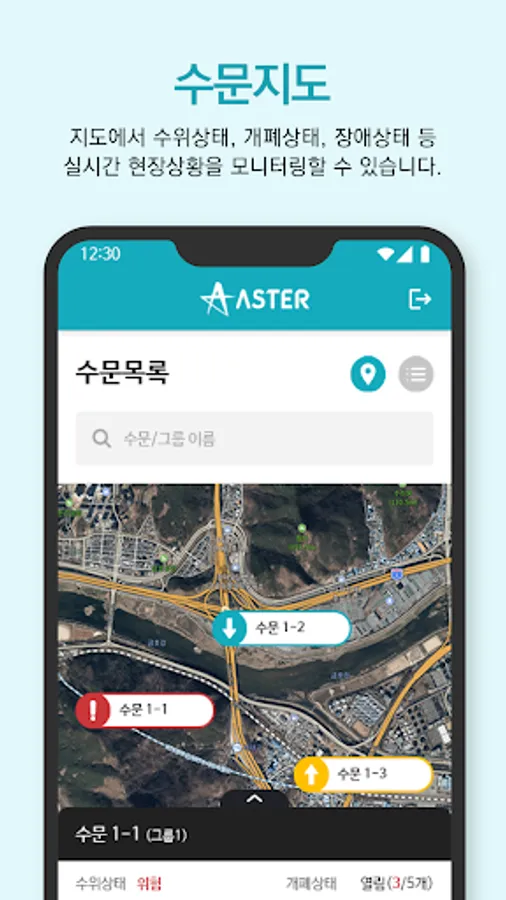 This application is a digital twin-based smart flood management app that utilizes the ASTER framework developed by Netro to grasp the real-time on-site situation through GIS, CCTV, and remote control unit (RCU), and supports rapid response such as opening and closing the floodgates in case of emergency.
