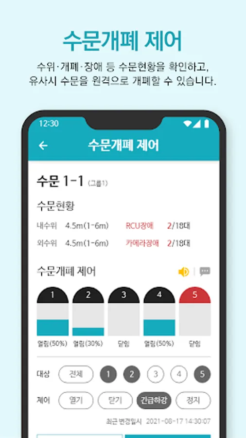 Real-time on-site monitoring through water gate information, failure information, open/close, CCTV video, etc.