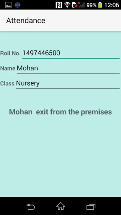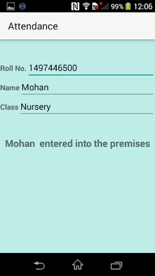 B. NFC Attendance – All the registered tags can be scanned by touch the NFC device and the attendance will be marked for the day. SMS will be triggered to parents for entry and exit.