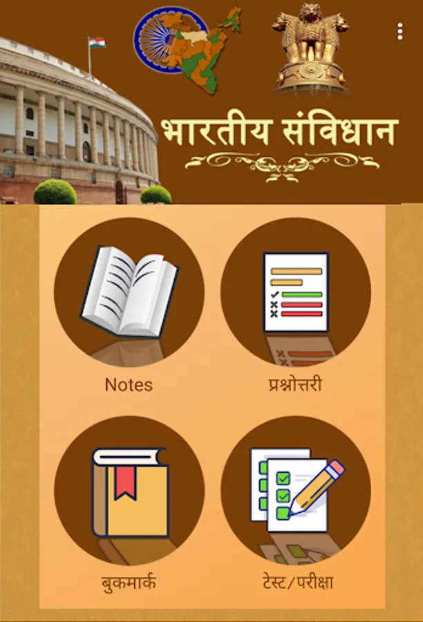 Bhartiya Samvidhan(भारतीय संविधान) application provide important Notes,Questions - Answers(प्रश्नोत्तरी) and MCQ about Constitution Of India in Hindi Language.