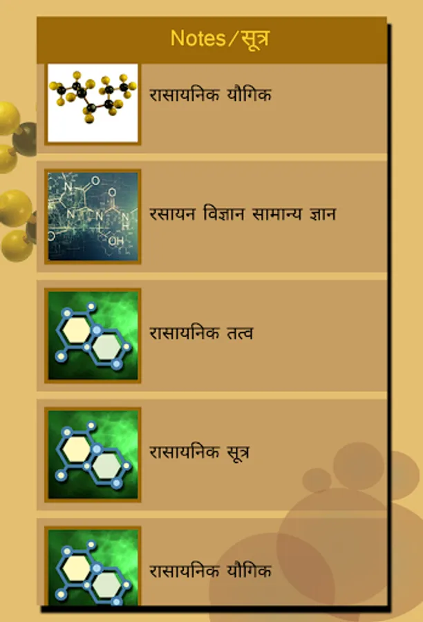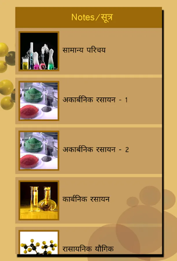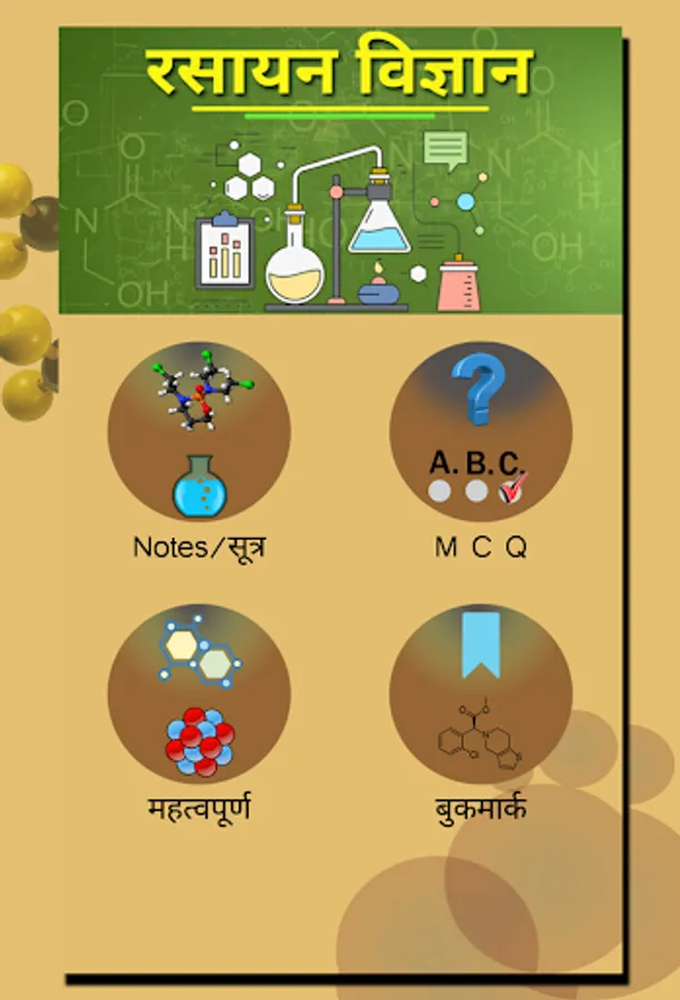 Chemistry in Hindi(रसायन विज्ञान) application provide various Chemistry topics with Notes , MCQ and Formula for competitive and other exam preparation in Hindi Language.