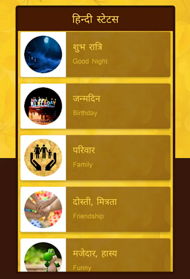 Hindi Status(हिंदी स्टेटस) application is present large collection of Status or Message in Hindi Language.
