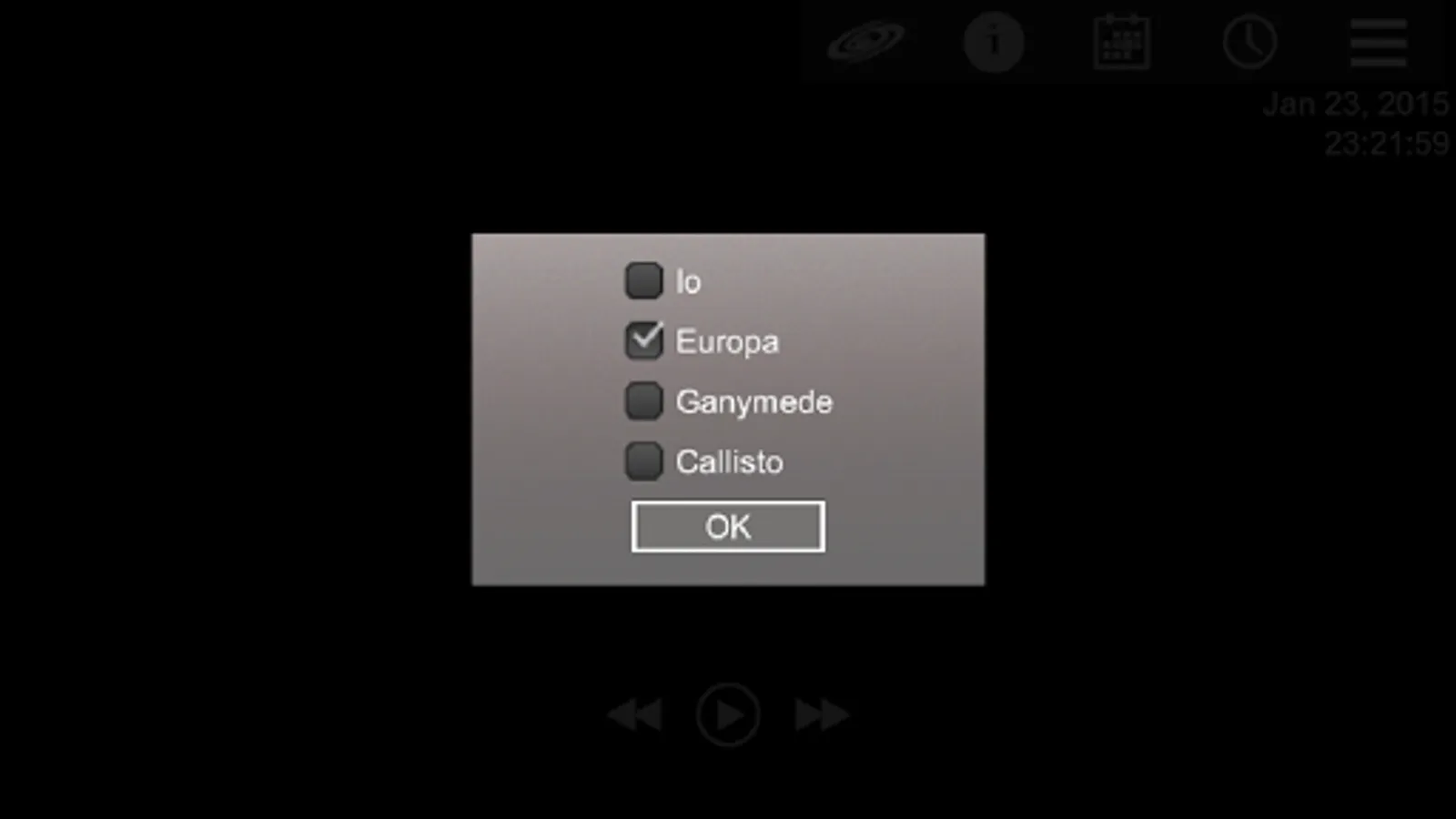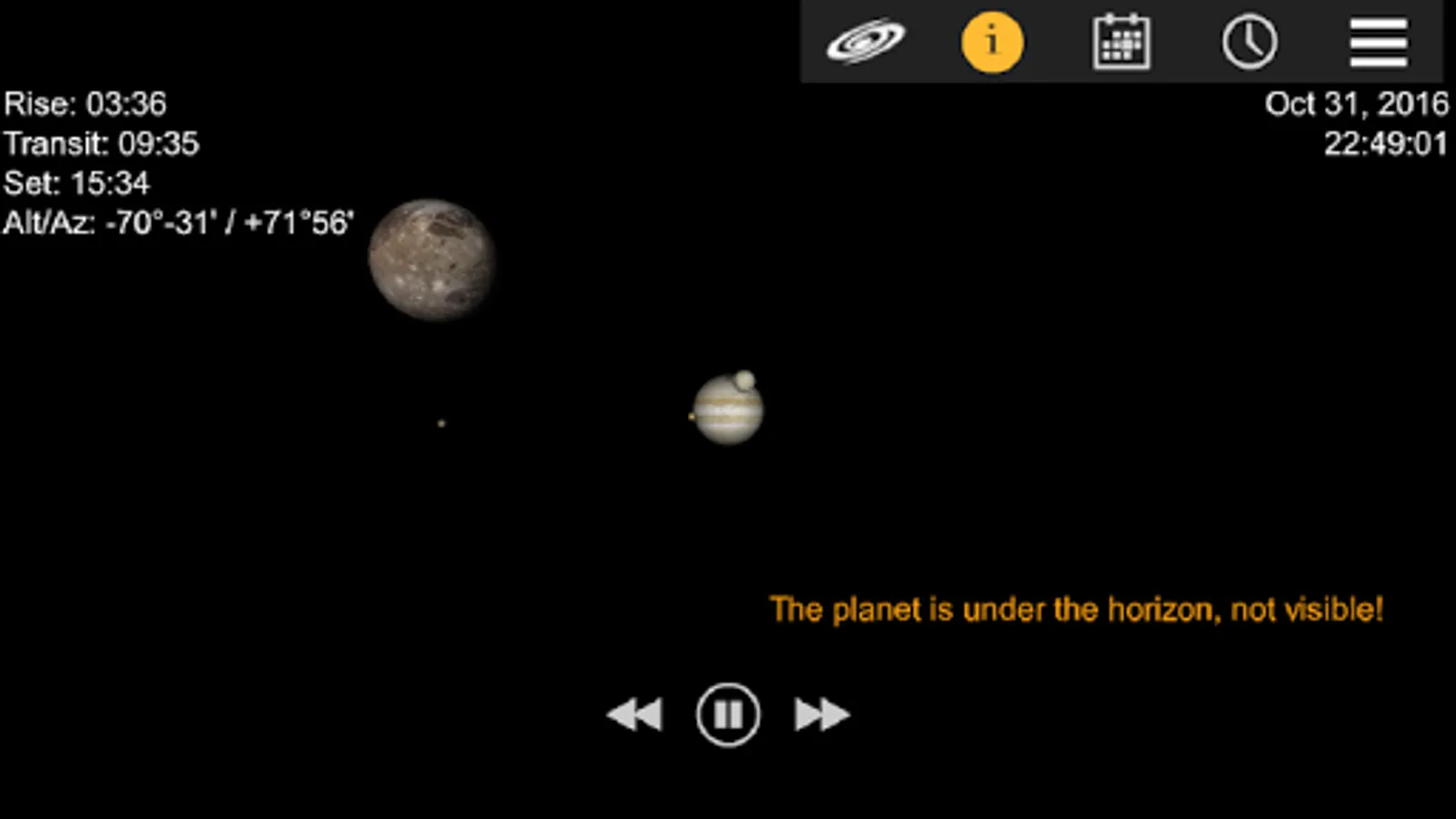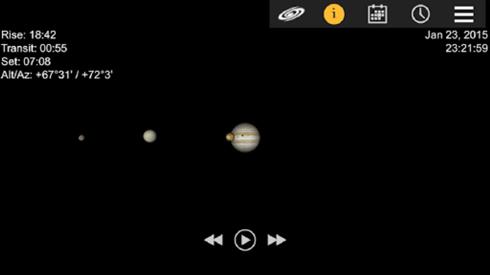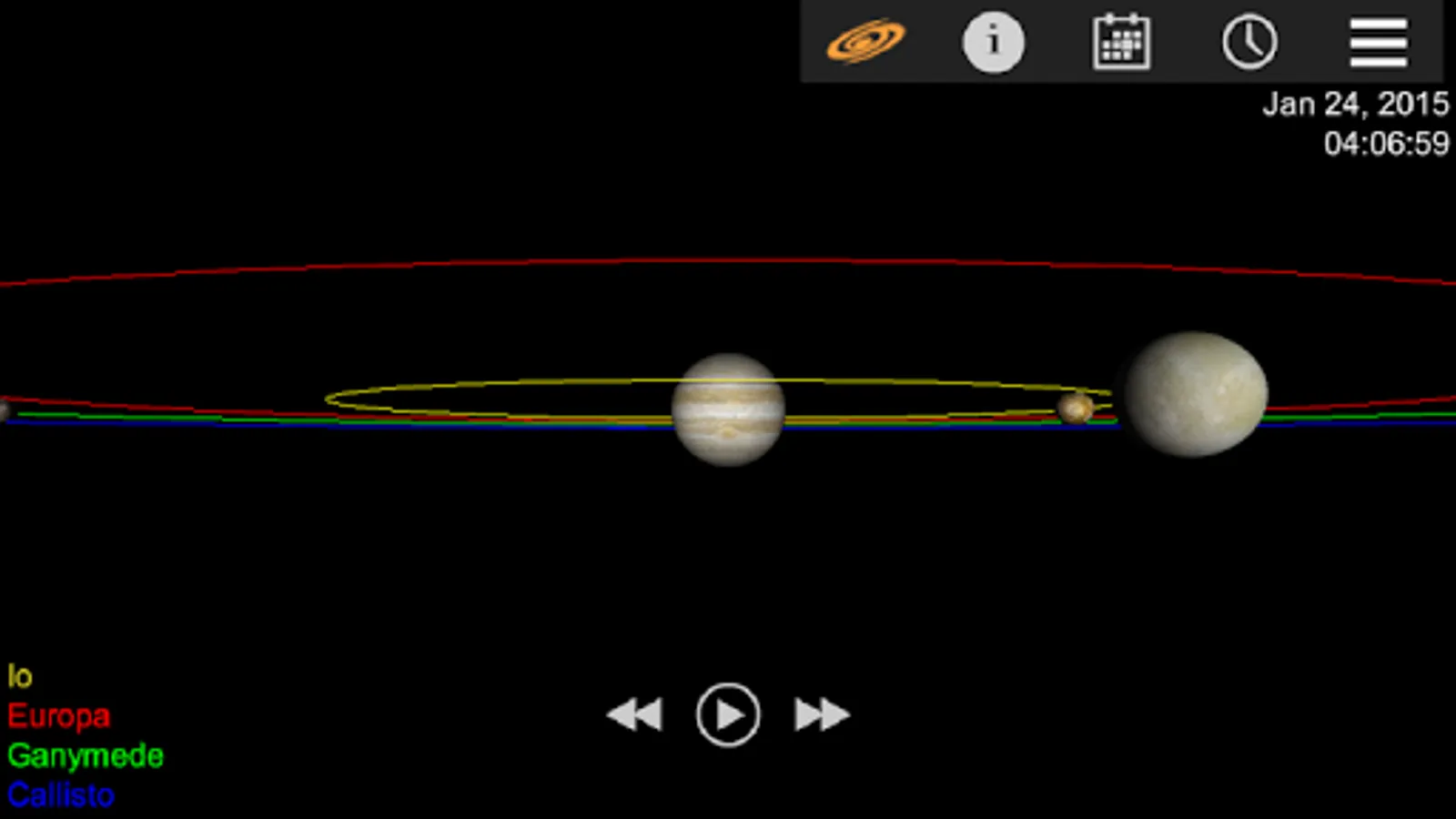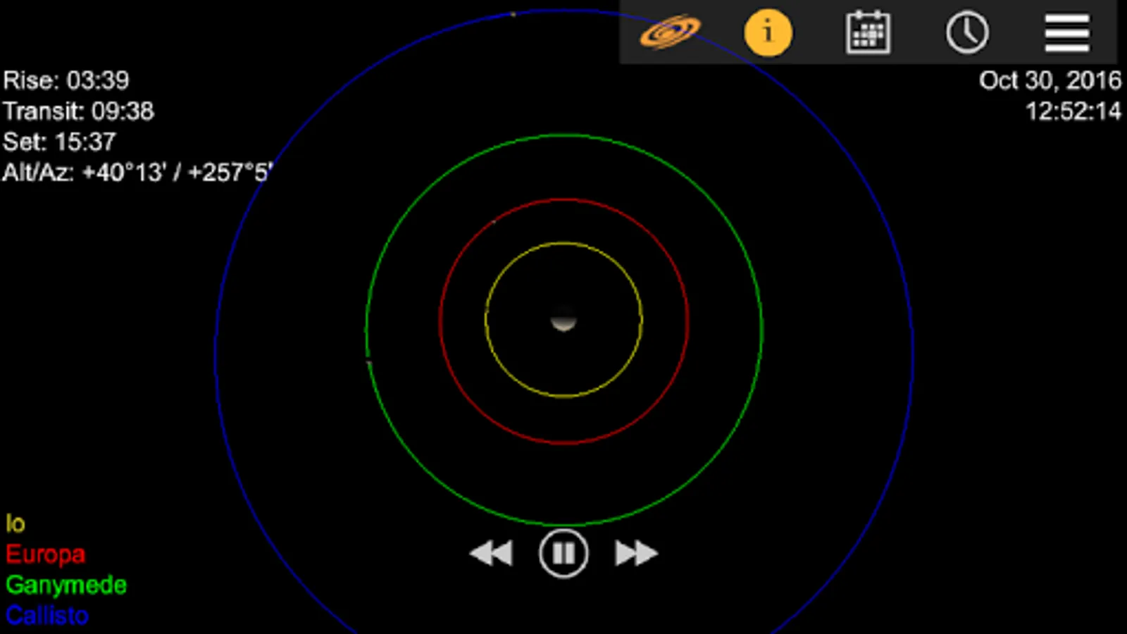 Jupiter Simulator is an astronomy app that shows the location of the four largest Jupiter moons, and the Great Red Spot.