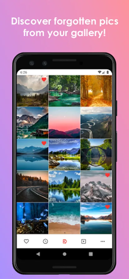Discover your gallery in random order! Explore forgotten pictures and videos!