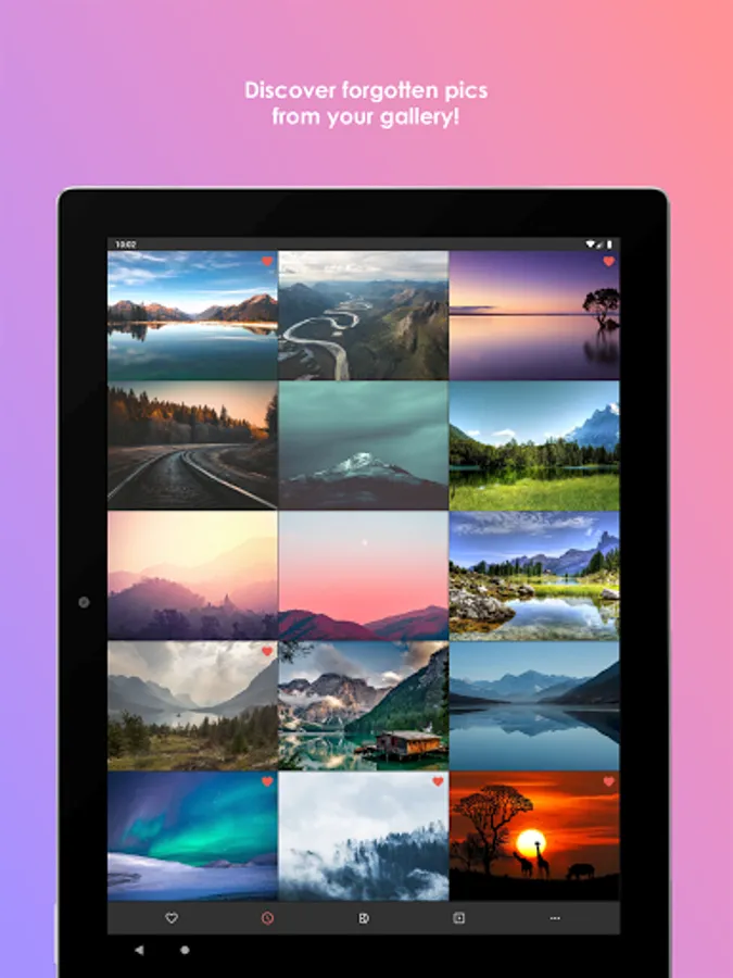 Discover your photos and videos in a new way! Random Gallery helps you relive old memories and organise your media library. The application allows you to view images and videos randomly selected from the albums/folders of your device. You can mark pictures as favourites and share them. Delete or hide unwanted content, which additionally frees storage on your device. Sort recently added pics and easily delete them from different source folders like camera roll, WhatsApp or other applications.