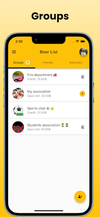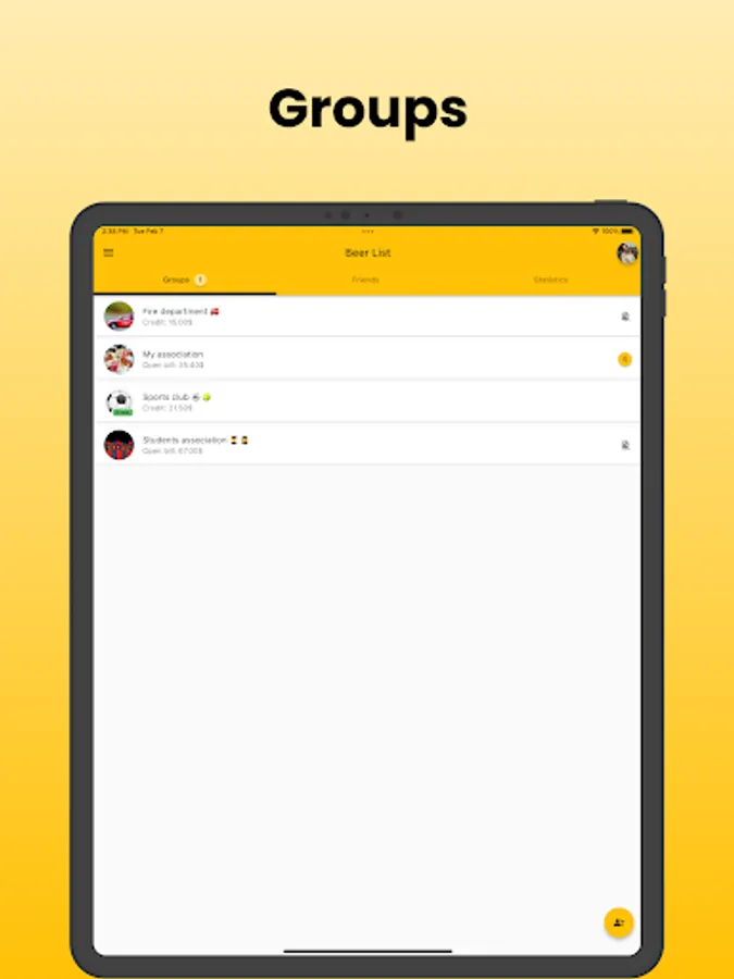 Create individual groups for your club (such as sports club, music club, fire brigade,...), your student union and for your company or use our beer list - tally app as a personal drink counter.