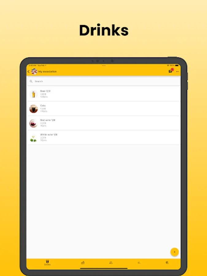 Add drinks to the drinks list and invite members to the group and members can enter / count the drinks from the drinks list.