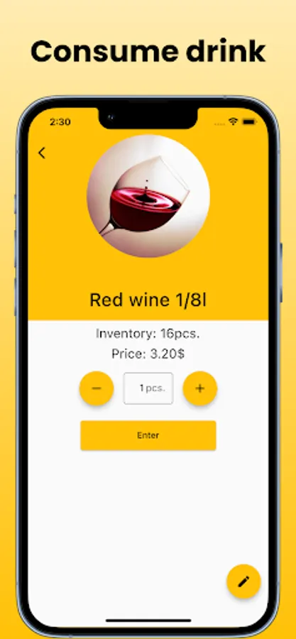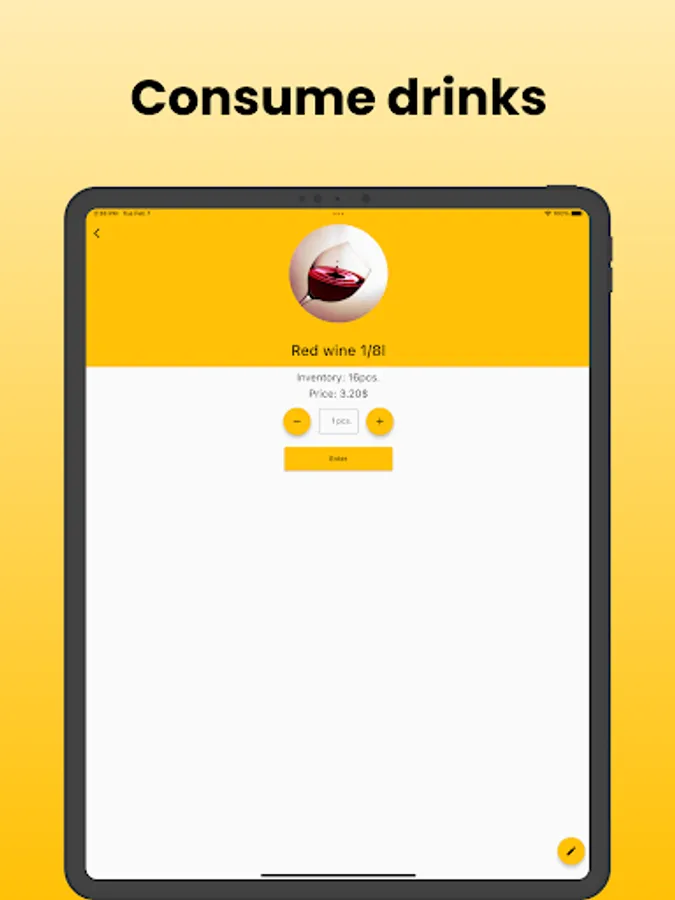 - The drinks attendant can read the consumption of each drink in the drink tracker and use it to create a shopping list.