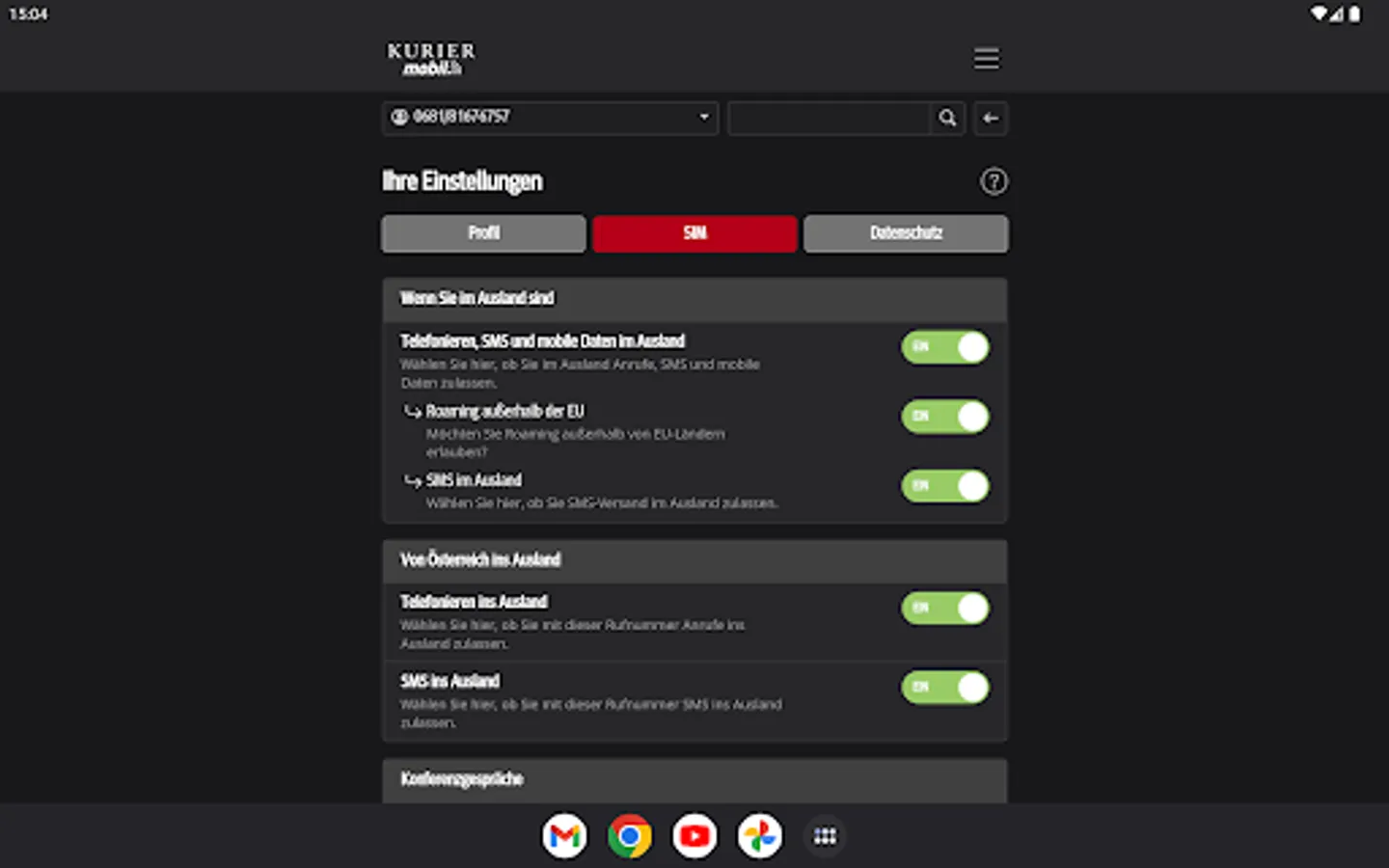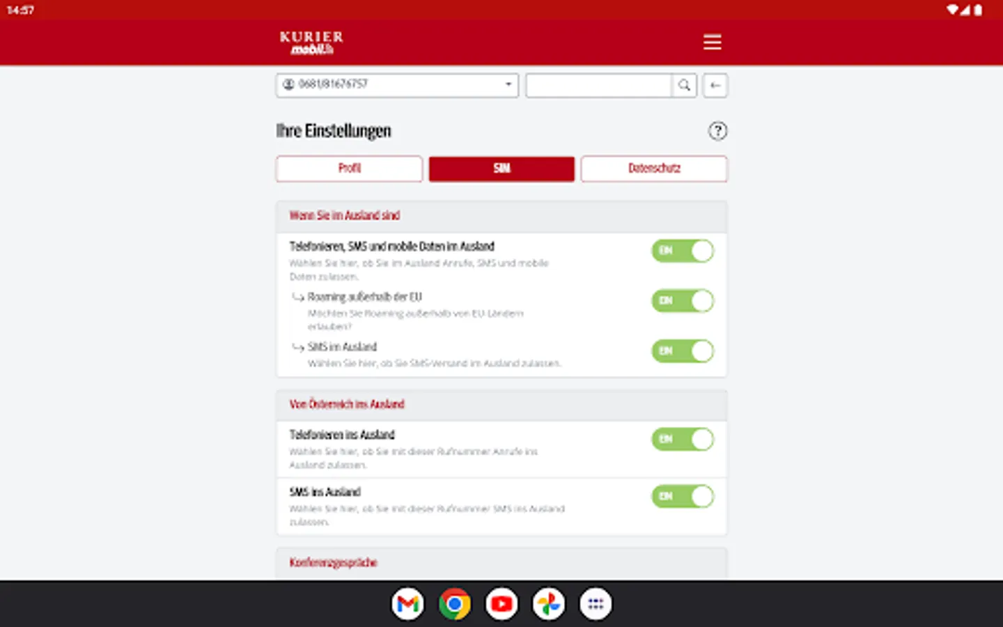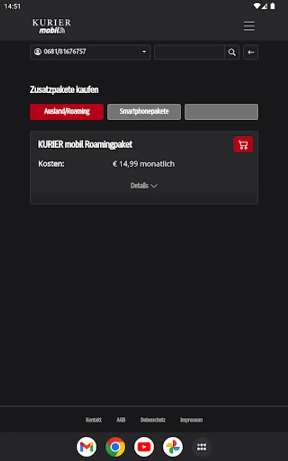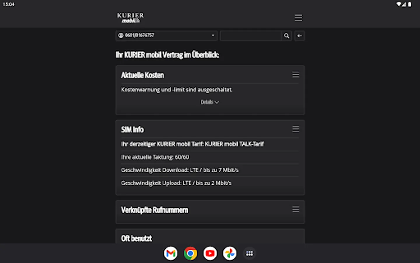 With the free KURIER mobile app, you always have mobile and easy access to the consumption of your included free units, the current cost status and also invoices and itemized bills from the last few months. You will also find information about your contract and can make personal settings. You can optimize your tariff at any time by activating additional packages or upgrading your units.
