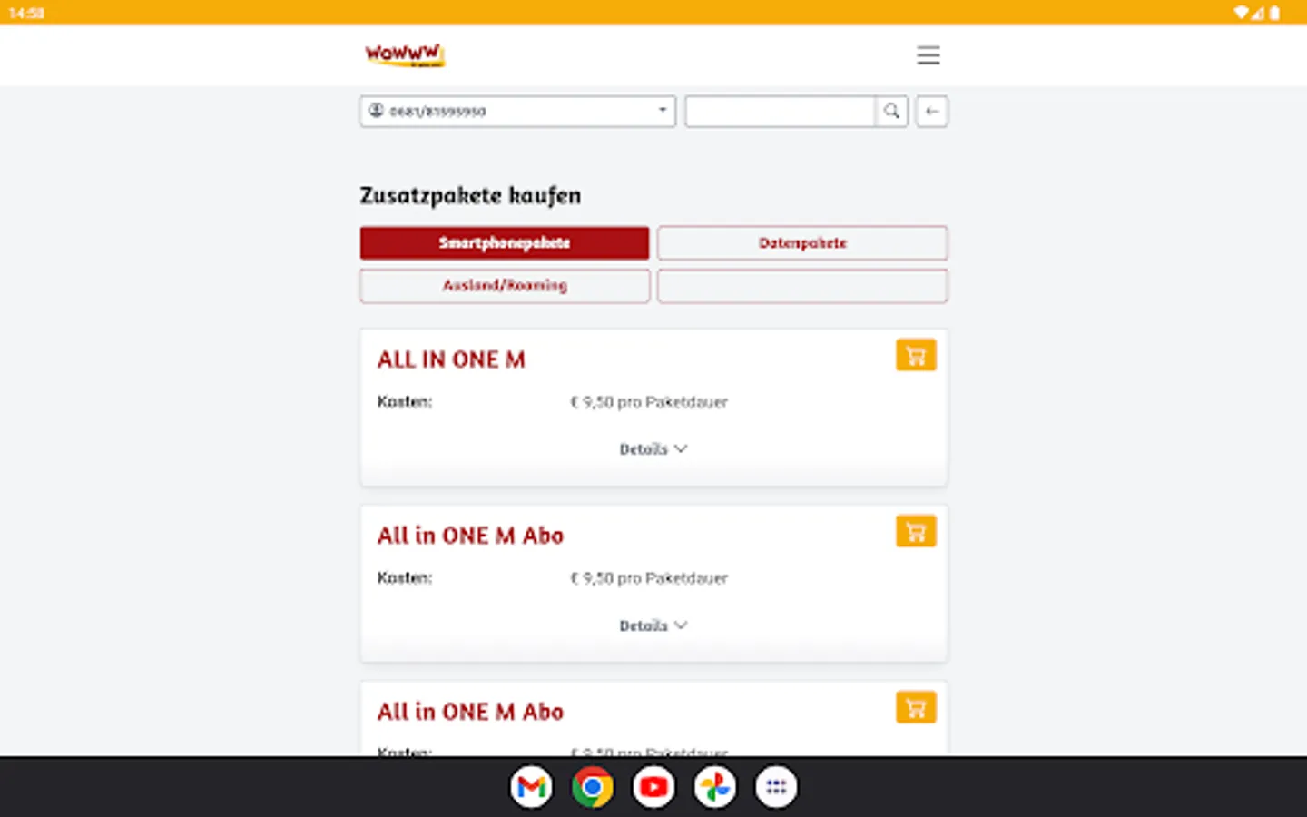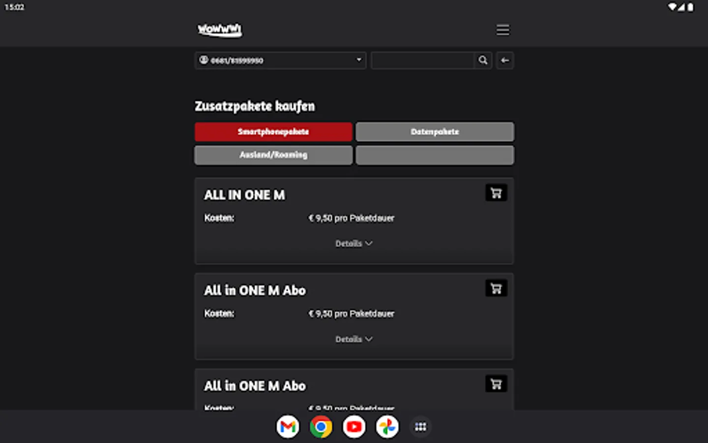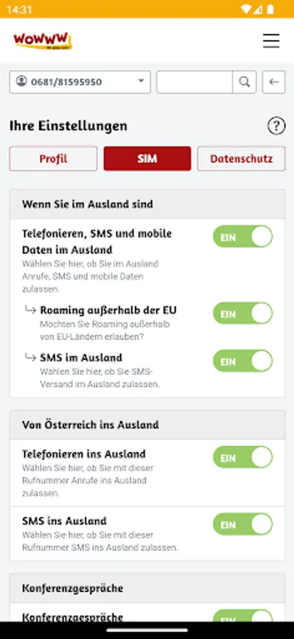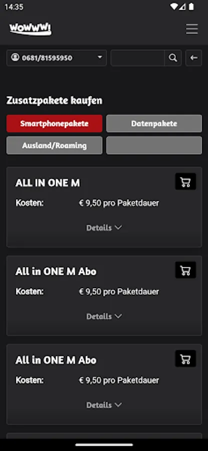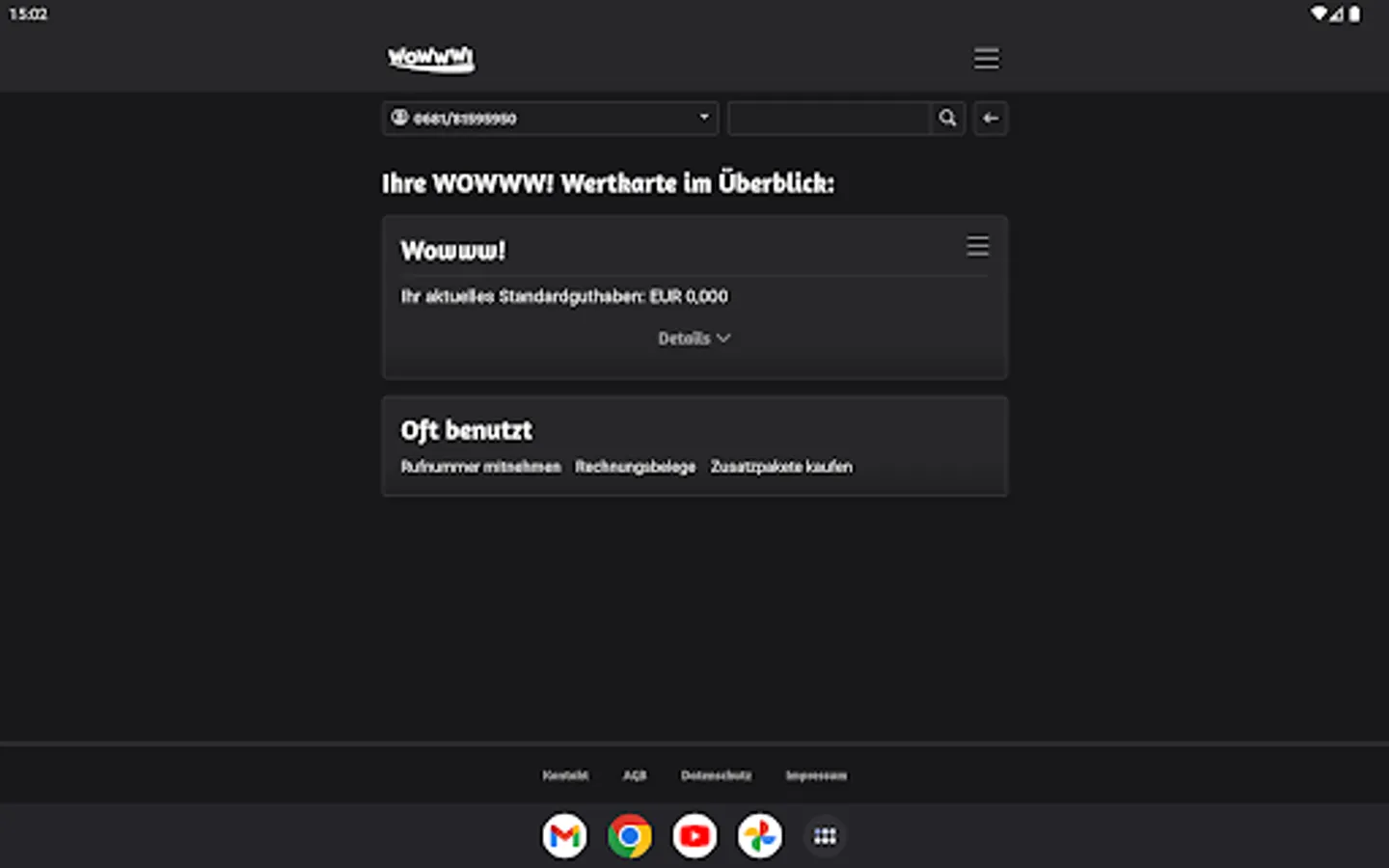 The perfect addition to your WOWWW! SIM card! You can see at a glance the consumption of your included free units, the current cost status and also invoices and itemized bills from the last few months. You will also find information about your contract and can make personal settings. You can optimize your tariff at any time by activating additional packages or upgrading your units.